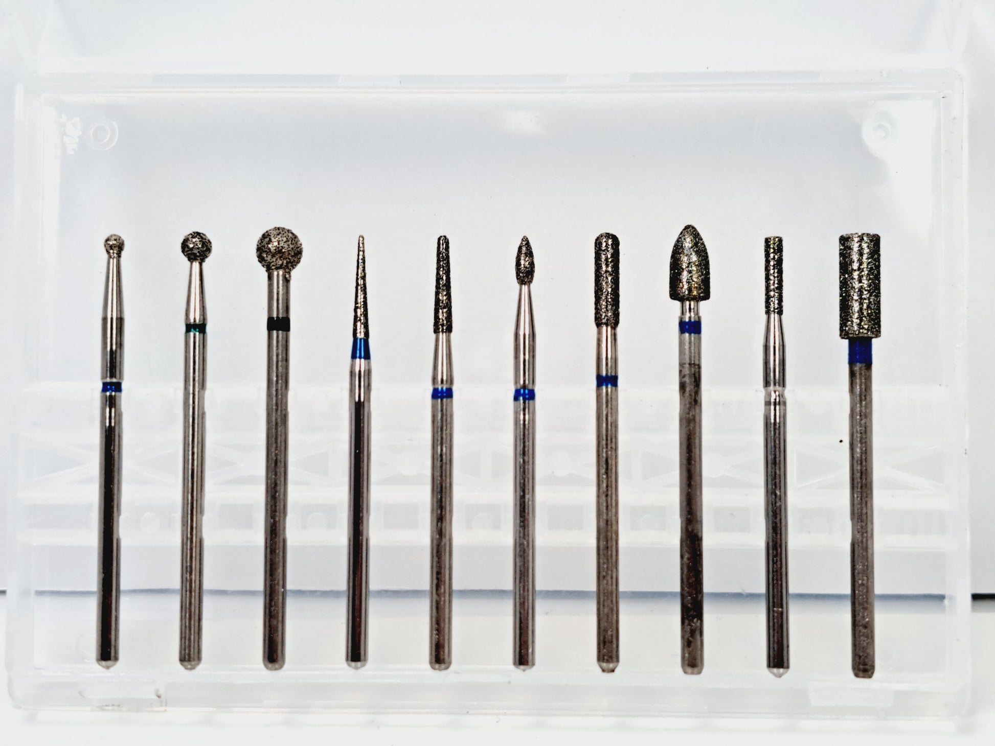 Diamond dust is used to create an abrasive surface that is gentle enough to use on the natural nail and the underside of nail enhancements. Diamond bits are used for cuticle work, removing product and callused skin around side walls of the nail.